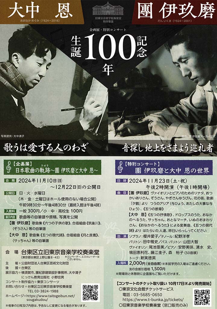 旧東京音楽学校奏楽堂 特別事業【特別コンサート】團伊玖磨と大中恩の世界