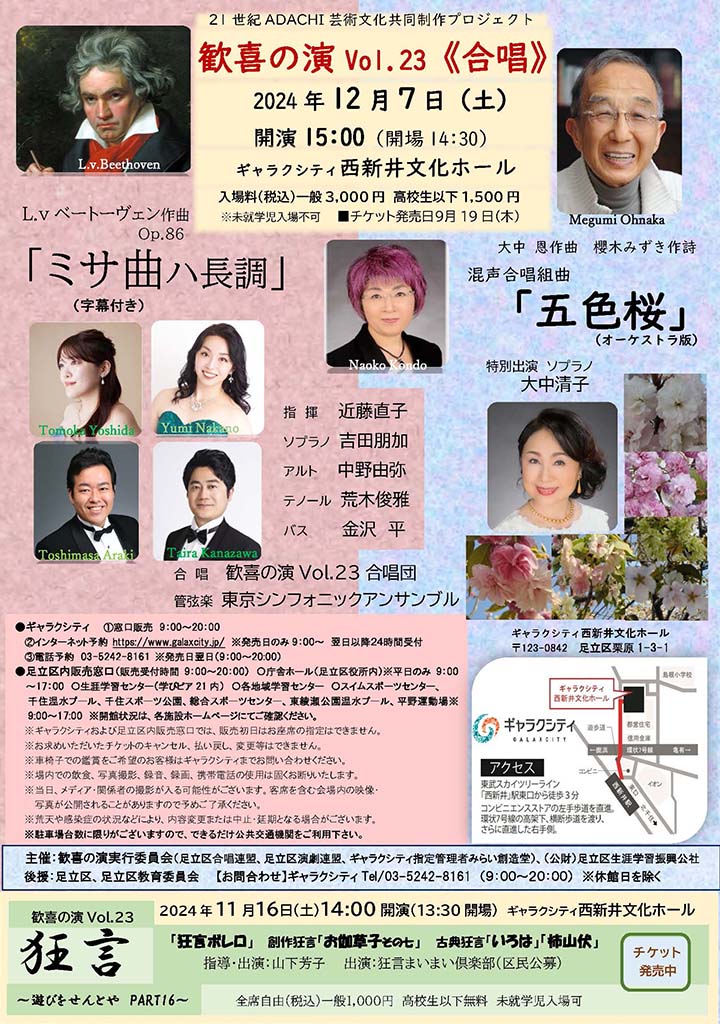 「歓喜の演合唱団」は足立区にあるギャラクシティ西新井文化ホールで活動する一般公募の合唱団です。
