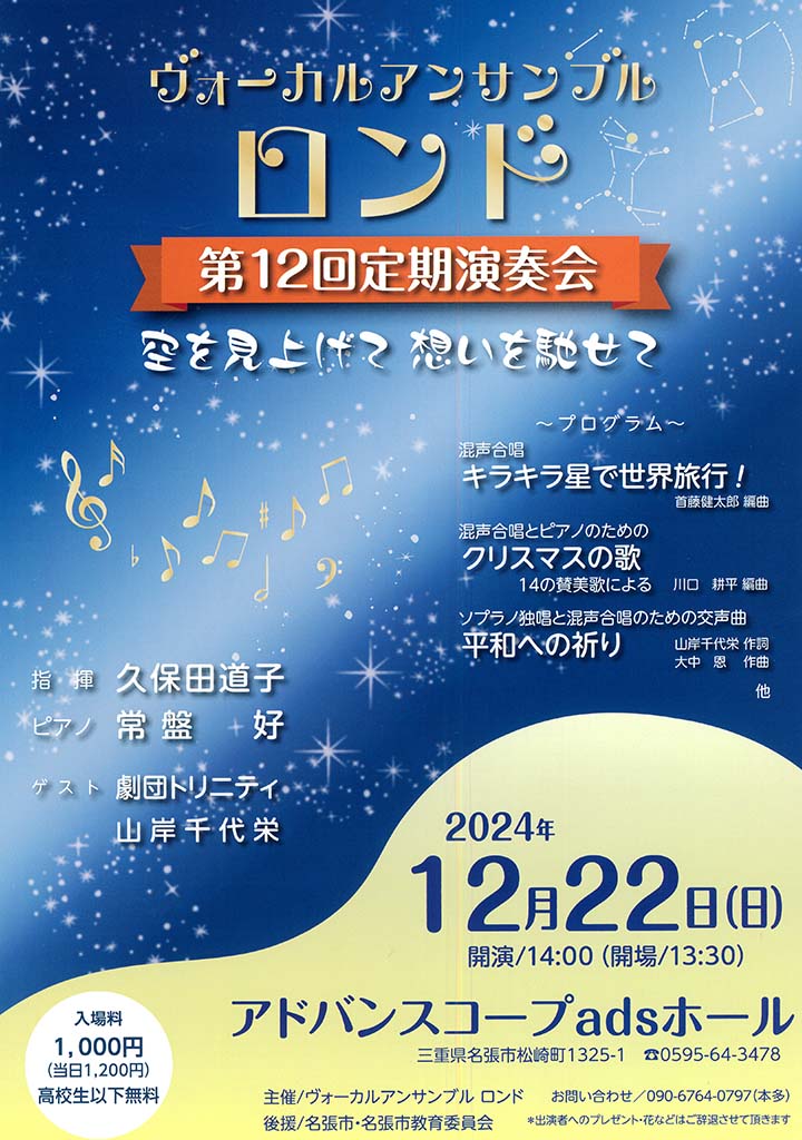 ヴォーカルアンサンブル ロンド 第12回定期演奏会 空を見上げて想いを馳せて
