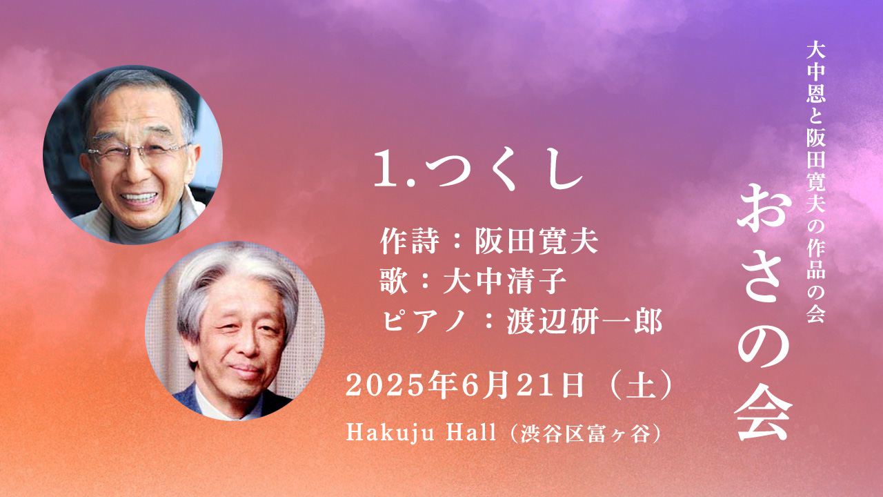 2025年6月21日(土)に開催されました「大中恩と阪田寛夫の作品の会 おさの会」にて演奏された曲目を「大中恩音楽記念館 公式YouTubeチャンネル」で配信いたします。